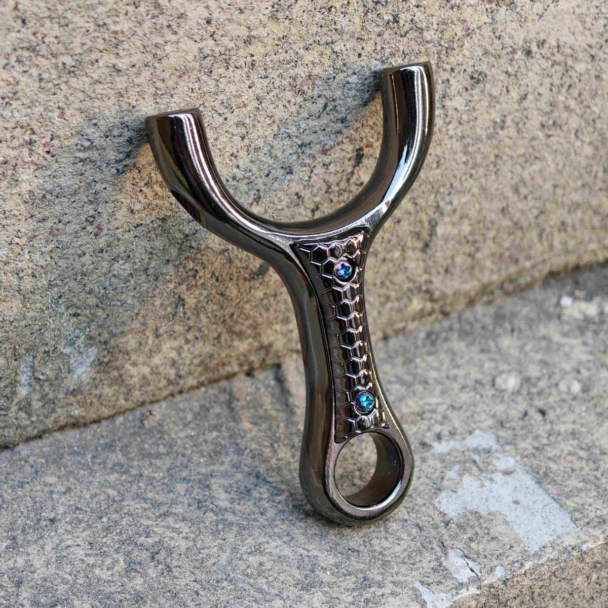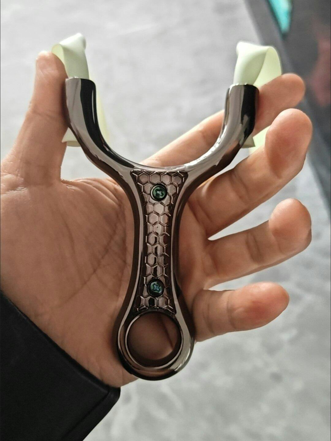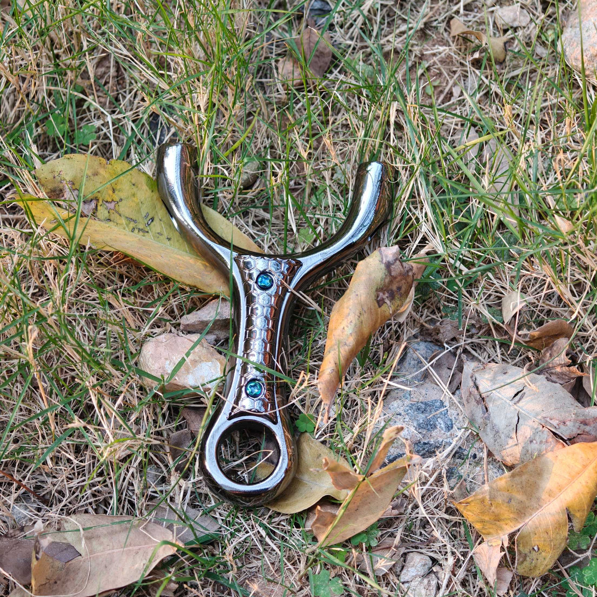 For straight, repeatable shots the Owl-X38 uses a single, mirrored notch on each fork that keeps band force balanced. That balanced setup helps the band return on a truer line, improving aim and consistency for both practice and serious shooting.