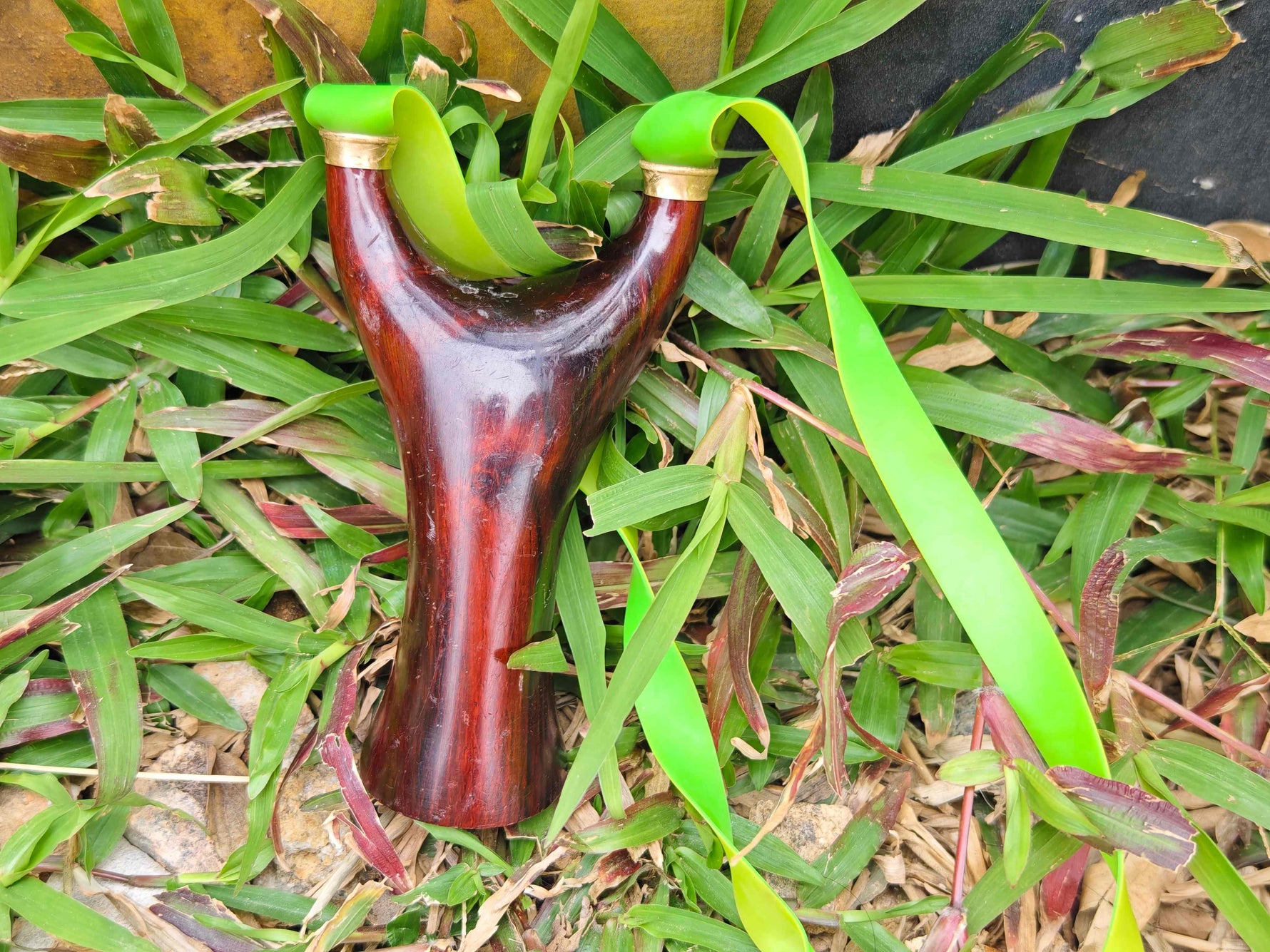 The Sylvan Defender slingshot draws inspiration from the serene forest, embodying the spirit of nature in its design. Crafted from natural rosewood, each piece features unique wood grain patterns, making it one-of-a-kind. This catapult combines traditional craftsmanship with modern design, offering a comfortable grip and balanced weight that enhances shooting stability. For slingshot lovers, it's not just a tool but a symbol of luck and protection, much like a guardian from the forest.