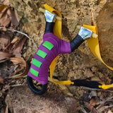 No se deje engañar por la discreta apariencia del Pocket Snipe. Esta honda es una máquina potente, fabricada en acero inoxidable de alta calidad mediante técnicas de doblado en frío. Su combinación de colores morado y negro no solo luce elegante, sino que también la convierte en una elegante adición a cualquier colección. El Pocket Snipe está diseñado para la precisión, con un punto de mira claro y una empuñadura cómoda, lo que lo convierte en una opción confiable para tiradores de todos los niveles.