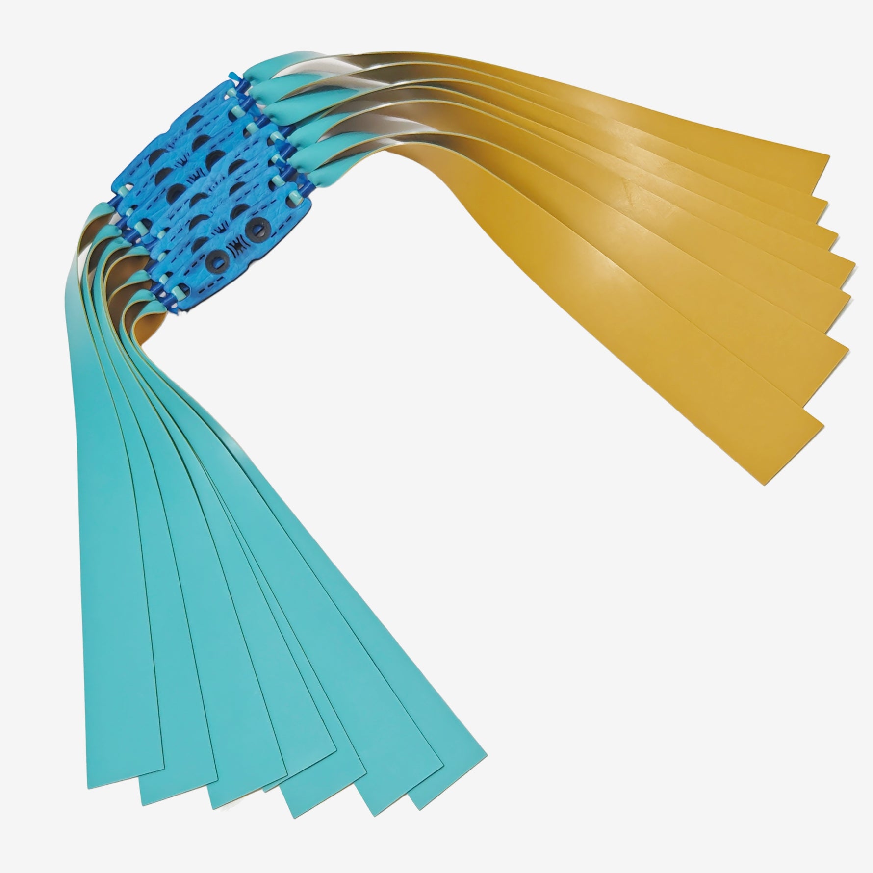 The Skybolt-A31-A30 delivers a reversible color match — crisp blue on one face and a rugged earthy tan on the other — letting you change the look of your setup in seconds. The band’s outer skin is finished with a sulfur-vulcanization treatment that toughens the surface against nicks and helps the core preserve consistent rebound over many cycles. Fitment is completed using the Fold-over tying method, creating a streamlined, secure join that holds steady through repeated firing. In normal use, plan on about 300 shots as a practical reference for expected service life.