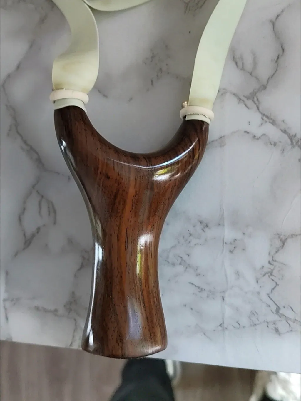The Sylvan Defender slingshot draws inspiration from the serene forest, embodying the spirit of nature in its design. Crafted from natural rosewood, each piece features unique wood grain patterns, making it one-of-a-kind. This catapult combines traditional craftsmanship with modern design, offering a comfortable grip and balanced weight that enhances shooting stability. For slingshot lovers, it's not just a tool but a symbol of luck and protection, much like a guardian from the forest.