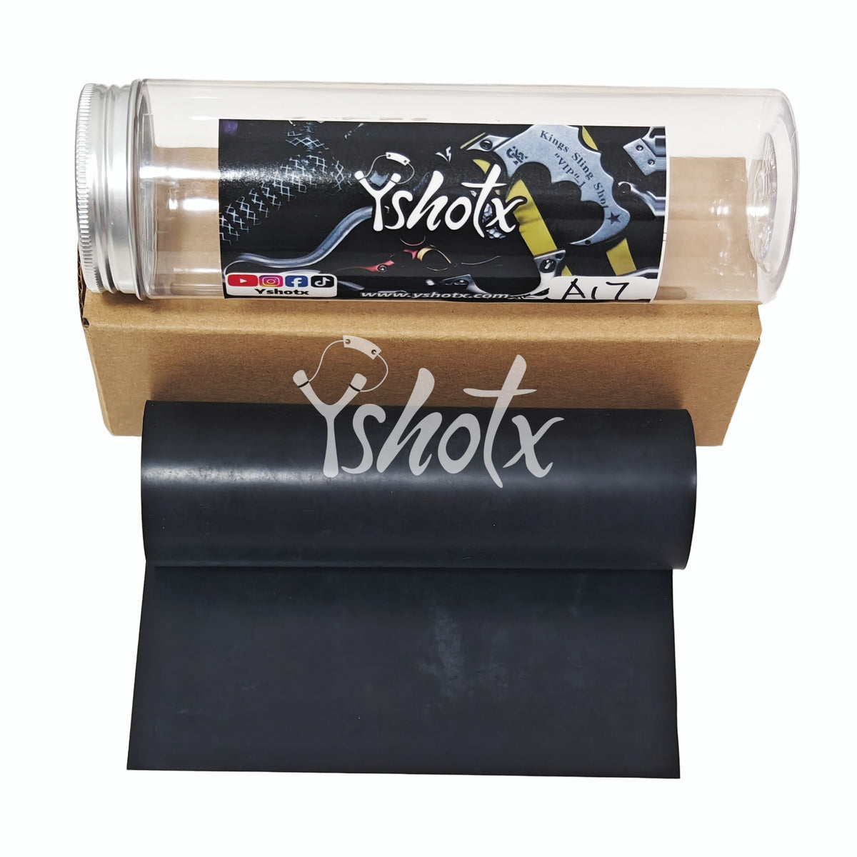 Cada banda A17-Obsidian Force é inspecionada à mão e testada à tensão para garantir que atende aos padrões Yshotx de simetria, durabilidade e consistência de disparo a disparo.